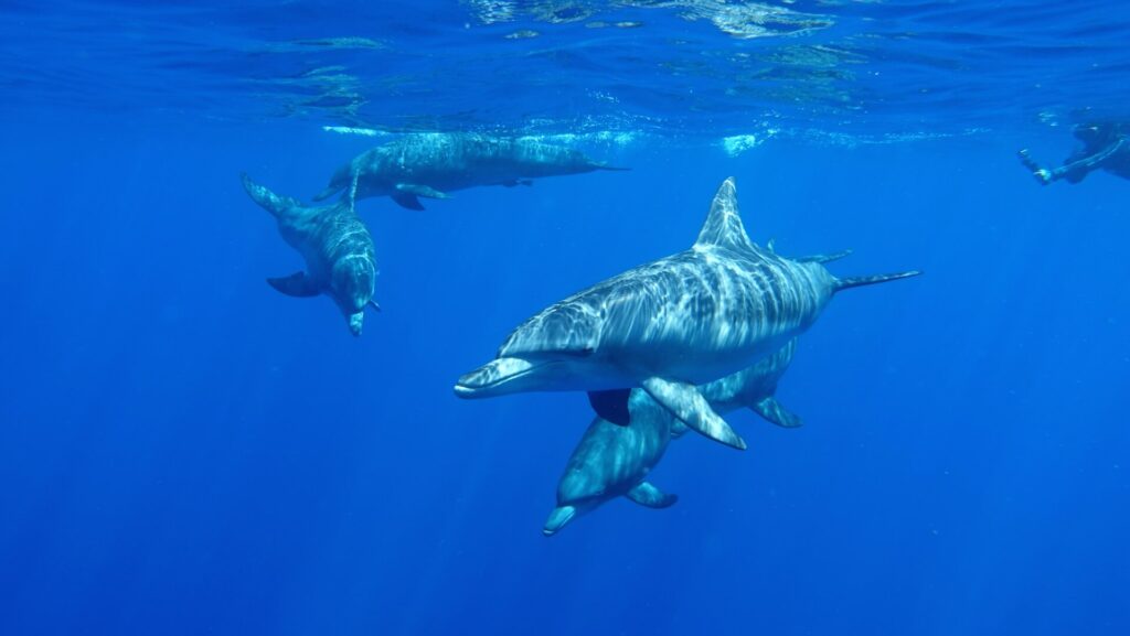 諦めかけたその時、一匹のイルカがすっと私に近づき、目と目が合いました。20秒ほどだったでしょうか。見つめ合い、並走するように、一緒に泳いだのです。(一緒に泳いでいた友人にも何か特別な時間に見えたと後から告げられたほど)